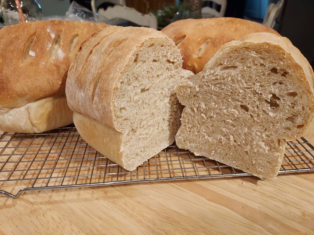 So as you can see, I am not a fancy sourdough girl. Yes, I have the tools. Yes, I have the clay baker. Yes, I can score it beautifully with some type of design. But honestly, I just need a good loaf of bread for the week.