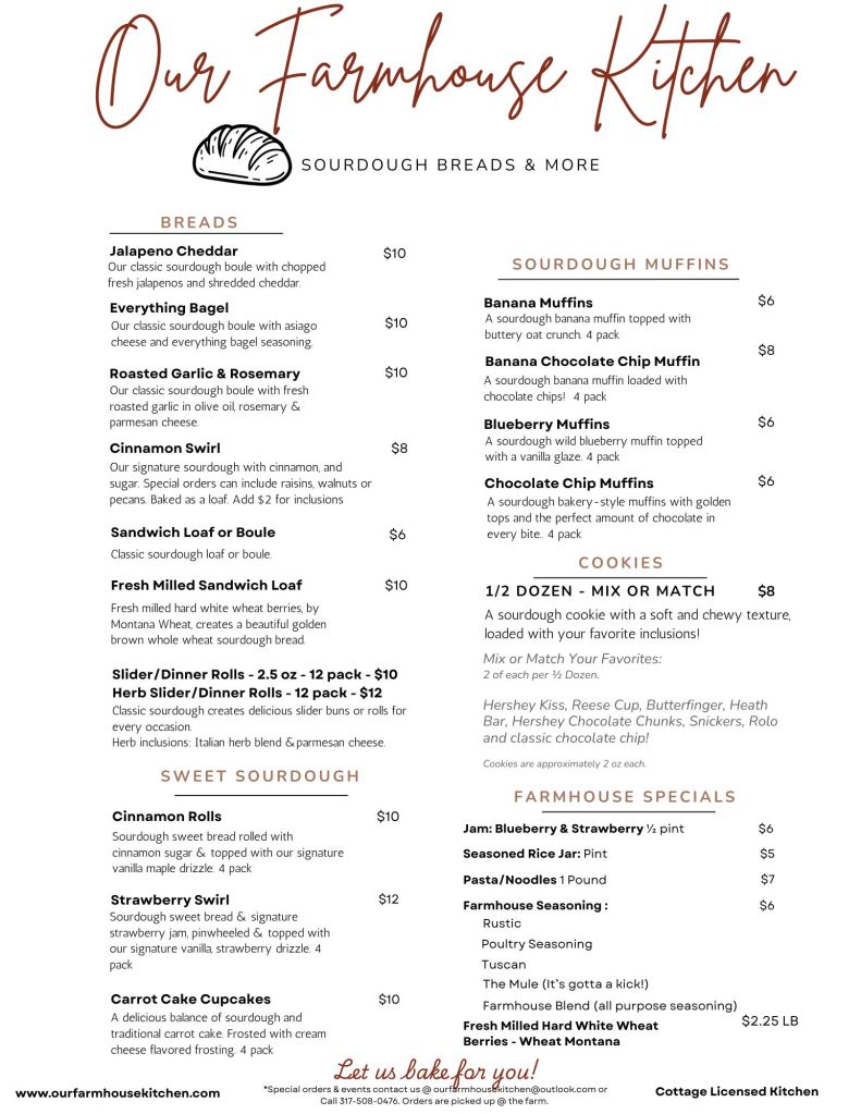 The Farm Bakery, at this time, is by order only and picked up at the farm.